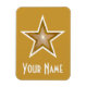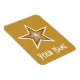 Modernes Design mit einem "leuchtenden" goldenen und weißen Stern auf dunkelgelbem Hintergrund. Kühlschrankmagnet mit individualisierbarem Design für Sie, um Ihre eigenen Texte, Bilder und Ideen zu personalisieren. Bitte beachten Sie, dass es sich um ein gedrucktes Bild handelt, das mit Originalfotos und Digitaltechnik erstellt wurde, es nicht glänzt oder echte Glitzern enthält.
