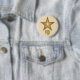 Modernes Design mit einem dunkelgelben und weißen Stern in dunkelcremefarbenem Hintergrund. Button-Abzeichen mit individualisierbarem Design für Sie, um Ihre eigenen Texte, Bilder und Ideen zu personalisieren. Bitte beachten Sie, dass es sich um ein gedrucktes Bild handelt, das mit Originalfotos und Digitaltechnik erstellt wurde, es nicht glänzt oder echte Glitzern enthält.