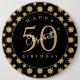 A simple gold stars pattern design with the text HAPPY 50th BIRTHDAY and your own custom name, on a black background.