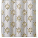 Ein eleganter Weihnachtsduschvorhang mit einem festlichen Muster von großen goldenen Schneeflocken-Sternen, verstreut über einen silbernen Metallhintergrund, um Ihrem Bad und Ihren Ferien in diesem Jahr eine Touch von Farbe und Klasse hinzuzufügen.