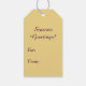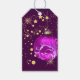 Dieses Weihnachtsgeschenk-Tag zeigt ein Vorbild eines hübschen lila und silbernen wirls geschmückten Weihnachtsblitzes gegen einen goldsternfüllten Nachthimmel. Auf der Rückseite des Tags wird Gold mit dem lila Text des Tags verglichen.