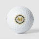 Dieser klassische Golfball ist mit einem Monogramm goldfarben in einem Kreis gerahmt mit schwarzen Punkten und schwarz umrahmt. An der Außenseite des schwarzen Rahmens befindet sich ein Kreis aus leuchtenden goldenen Sternen. Ihr Name ist schwarz über das goldene Mittelmonogramm geschrieben. Klug, attraktiv und personalisiert für Sie!