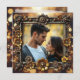 Coole und einzigartige Hochzeitskarten RSVP. Steampunk-Thema mit vergoldeten Metallgetrieben, Blume und einem goldenen Buh-Hintergrund. Laden Sie Ihr Lieblingsbild im personalisierenden Bereich hoch und bearbeiten Sie den Text auf der Rückseite, um Ihre Auswahl an Hochzeitsmahlzeiten hinzuzufügen.