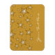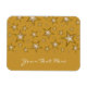Modernes Design mit "leuchtenden" goldenen und weißen Sternen auf dunkelgelbem Hintergrund. Kühlschrankmagnet mit individualisierbarem Design für Sie, um Ihre eigenen Texte, Bilder und Ideen zu personalisieren. Bitte beachten Sie, dass es sich um ein gedrucktes Bild handelt, das mit Originalfotos und Digitaltechnik erstellt wurde, es nicht glänzt oder echte Glitzern enthält.