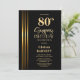 Gold Striped Black 80th Surprise Birthday Party Einladung