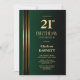Gold Striped Black Green 21st Birthday Party Einladung