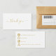 Stärken Sie das Wiederholen von Geschäften mit dieser raffinierten Dankeschön-Gehäusekarte, die eine anmutige Schriftenfront und kühne goldene Kontaktsymbole auf der Rückseite enthält. Fügen Sie einen QR-Code hinzu, um Kunden zu einer Website, Rezensionen, Social Networks oder einem Sonderangebot zu leiten, und fügen Sie eine kurze Dankesnachricht sowie einen nächsten Kaufrabatt bei, um Rücksendungen zu fördern. Der saubere, weiße Bestand und die gepflegte Gestaltung machen Details auf einen Blick leicht zu scannen. Set, Werbebotschaften und Farben können auf Anfrage aktualisiert werden, um dem Markenstil zu entsprechen.