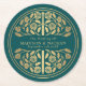Gold Teal Royal Medieval Sword Wedding Runder Pappuntersetzer