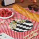 Gold Tone Bläserschwarz & Weiß Streifen Pappteller