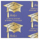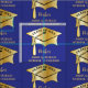 Dieses goldene Farbverlauf Graduiertenkappen-Design ist bereit für Sie, um mit Ihrem Klassenjahr in fett schwarz und Lieblingsgrad Namen und Schule in Gold und alles auf einem blauen (oder Sie können die Farbe ändern) Hintergrund personalisieren. Original Illustration und Design von Holiday Hearts Designs (alle Rechte vorbehalten).