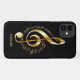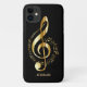 Moderner goldglänzender Kleber mit Noten auf schwarzem Hintergrund. Optionales Monogramm