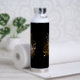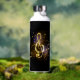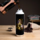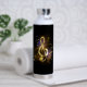 Jewelry, gold, musical treble clef with golden notes and stars on black glowing background.