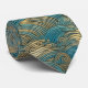 Elegante Krawatte mit einem japanischen Chiyogamimuster aus Gold und aquamarinen Wellen.