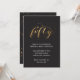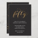 Lass allen mit dieser eleganten und modernen Schwarz und Gold 50 Einladung mit goldenem Spritzer kennen zu lernen. Anpassen Sie den Text einfach an Ihren Anlass.