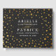 Gold und Black Confetti Foil Wedding Gästebuch - mit Vintagem schwarzem Hintergrund und vergoldeten Imitaten Glitzer Folie für elegante Dekoration. Dieses Design bietet auch moderne und elegante Schriftart für das Textlayout.