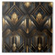 Diese Keramik-Kachel hat ein cooles goldfarbenes und schwarzes Muster, das wie ein 3D-Stadtbild aussieht. Es ist glänzend und hat viele Formen, die auf lustige Weise zusammenpassen. Das Design hat auch einen gepflegten Effekt, der wie ein Licht aussieht, das darauf strahlt. Diese Kachel kann jeden Raum aufregender und stilvoller aussehen lassen.