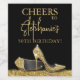 Elegante und schicke Moderne Gold und Personalisierte Black Birthday Wein Flasche Custom Labels mit Imitaten Glitzer Yellow Gold High Heel Stiletto Schuhe und individuelle Name Kalligraphie-Skript cursive mit "Cheers" zu Geburtstagsnamen jedes Alter Geburtstagsfeier!