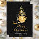 Diese elegante und schicke Urlaubskarte kann mit Ihrem Familiennamen personalisiert werden. Das Design ist mit einem vergoldeten Weihnachtsbaum mit einem Geschenk ausgestattet. Der Text kombiniert handgeschriebene Skripte mit modernen serifenlosen Schriftart für ein elegantes und raffiniertes Aussehen. Der fallende Schnee, Schneeflocken und Glitzern geben eine festliche und magische Touch.