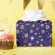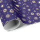 Goldenes Geschenkpapier mit blauem Hintergrund.