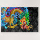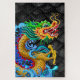Ein wunderschöner chinesischer Drache in Gold und Grün vermischt sich mit schwindelerregenden Wellen auf einem Hintergrund grauer Drachenwaagen.