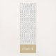 Maßgeschneiderte Yoga-Matte mit einem präparierten Trellis-Muster in Grau und Gold. Personalisieren Sie es mit Ihrem Namen monogram oder anderen benutzerdefinierten Text in einem modernen Script-Schriftart. Verwenden Sie die Designtools, um Hintergrundfarben auszuwählen, Schriftart und Farben zu bearbeiten oder eigene Fotos hochzuladen, um ein Design zu erstellen.