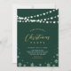 Feiern Sie die Saison mit dieser modernen Feier-Einladung. Dieses Design zeichnet sich durch stilvollen goldfarbenen Text, goldstrukturierte Schneeflocken und Lichter aus. Sie können Text, Schriftart und Farben anpassen. Ideal für ein Party in goldener und grüner Farbe zum Abendessen oder für einen Firmenfeiertag.