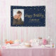 Dieses Geburtstagsbannerdesign besticht durch stilistische Goldkonfetti und "Happy Birthday" Typografie auf marinebasischem Hintergrund. Dieses Eventbanner ist die perfekte Dekoration für eine moderne Geburtstagsfeier. Sie können das Foto und den Text anpassen. Mehr Bannerdesigns gibt es in meinem Shop BaraBomDesign.
