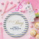 Diese moderne Babydusche Party-Platte verfügt über eine goldene Glitzer & Marine Typografie und Streifen. Mehr passende Artikel in meinem Shop BaraBomDesign. (Einladung, Dankeschön-Karte, vielen Dank an Aufkleber und mehr)