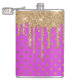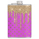 Glitzy Trinkflasche, mit einer Grafik von goldglänzender Farbe, die einen heißen rosa und goldenen Polka Dot Hintergrund abtropft. Passen Sie Ihren eigenen Text an. Gute Geschenkidee für Hochzeiten, Geburtstage und andere besondere Anlässe.