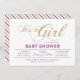 Feiern Sie einen besonderen Tag für Ihren Liebsten mit dieser modernen Baby Dusche Einladung! Dieses Design zeichnet sich durch einfache aber stilvolle Typografie " It's a Girl " mit violett & gold Glitzer Textur aus.