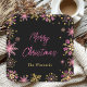 Dieser elegante und glamouröse Untersetzer besticht durch Aquarellgold und rosa Imitate, Schneeflocken aus Glitzer und Glitzern auf schwarzem Hintergrund. Der Text kombiniert handgeschriebene Skripte mit modernen serifenlosen Schriftart für ein elegantes und raffiniertes Aussehen. Das ist perfekt für eine Winter- oder Weihnachtsfeier. Grafiken von www.etsy.com/uk/shop/SunflowerDayLove