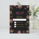 Diese elegante und glamouröse Rsvp-Karte bietet Aquarellgold und rosa Imitate Glitzer Schneeflocken und Glitzern auf schwarzem Hintergrund. Es eignet sich perfekt für eine Geburtstagsfeier im Winter oder Weihnachten.