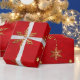 Gold und rote WeihnachtsPackpapier-Rolle Geschenkpapier