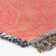 Ein detailliertes kaleidoskopisches Design mit feinen goldfarbenen Linien, die sich auf rotem Hintergrund kreuzen.