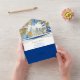 Gold und Royal Blue Tropical Leaf All In One Einladung
