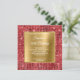 Schaffen Sie sich einen extravaganten Meilenstein für Ihr Geburtstagsfest. Das Overlay verfügt über eine quadratisch goldgelb gebürstete Metal Ober Folie für ihre Einladung Informationen. Sie können die Stile, die Farbe und die Größe des weißen Schriftartes anpassen. Im Hintergrund befindet sich ein rubinrotes Imitat funkelnd Glitzer Diamant gestopft moderne luxuriöse Folie digitale Kunstelement, das wie ein Foto druckt. Fantastische Glam Geburtstagskünstlerin lädt zu Ihrem besten Freund ein.