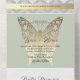 Elegante, moderne, schlaue, grüne und goldene Folie für eine Hochzeitseinladung mit einem bezaubernden einzigartigen Schmetterling - Symbol für spirituelle Wiedergeburt, Hoffnung und Leben. Fügen Sie Ihre Hochzeitsdetails und uAwg.