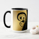 Goldener Metalleffekt auf schwarzem, blumengeschmücktem Hintergrund.