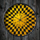 Gold- und Schwarz-Checked-Viereck-Muster / Retro-D Runde Wanduhr