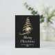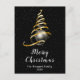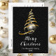 Diese elegante und schicke Urlaubspostkarte kann mit Ihrem Familiennamen personalisiert werden. Das Design ist mit einem goldenen und schwarzen Band Weihnachtsbaum mit einem Bauble ausgestattet. Der Text kombiniert handgeschriebene Skripte mit modernen serifenlosen Schriftart für ein elegantes und raffiniertes Aussehen. Der fallende Schnee, Schneeflocken und Glitzern geben eine festliche und magische Touch.