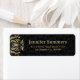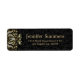Blütenwirbel aus Glam mit goldfarbener und weißer glitzernder Textur auf schwarzem Damast-Muster-Hintergrund - Sondertext in Goldtönen.