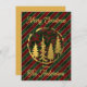 Personalisierte Weihnachtskarte mit roten und grünen Velours-Streifen mit goldenen Bäumen und Samt botanischen Mittelpunkt, mit "Frohe Weihnachten" und Ihrem Familiennamen am Ende der Karte. Alle Texte auf dieser Karte können bearbeitet werden, inklusive 'Titel', 'from' und 'name'.