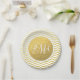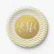 Gold und Weiß Zickzack Mit Monogramm Personalisier Pappteller