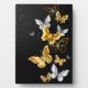Gold, Schmuck und weiße Schmetterlinge auf schwarzem Hintergrund. Goldener Schmetterling.