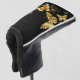 Gold, Schmuck und weiße Schmetterlinge auf schwarzem Hintergrund. Goldener Schmetterling.