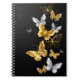Gold, Schmuck und weiße Schmetterlinge auf schwarzem Hintergrund. Goldener Schmetterling.