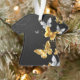 Gold, Schmuck und weiße Schmetterlinge auf schwarzem Hintergrund. Goldener Schmetterling.