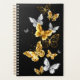 Gold, Schmuck und weiße Schmetterlinge auf schwarzem Hintergrund. Goldener Schmetterling.