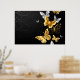 Gold, Schmuck und weiße Schmetterlinge auf schwarzem Hintergrund. Goldener Schmetterling.