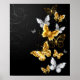 Gold, Schmuck und weiße Schmetterlinge auf schwarzem Hintergrund. Goldener Schmetterling.